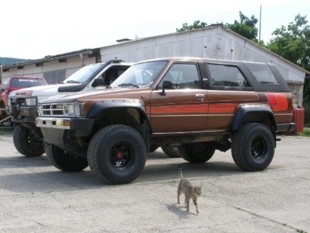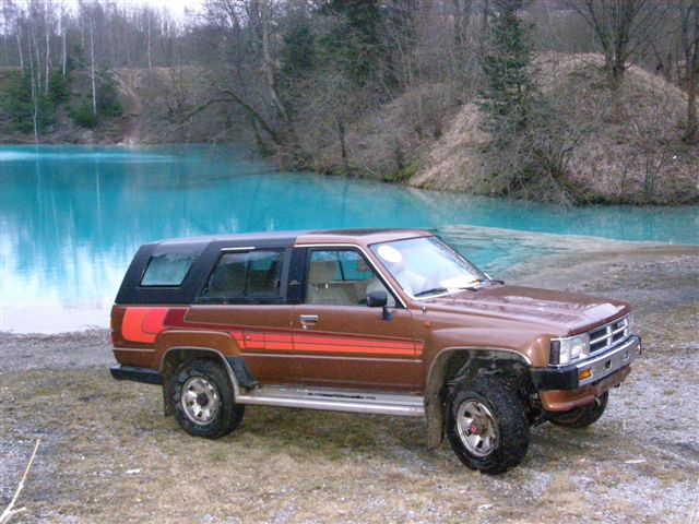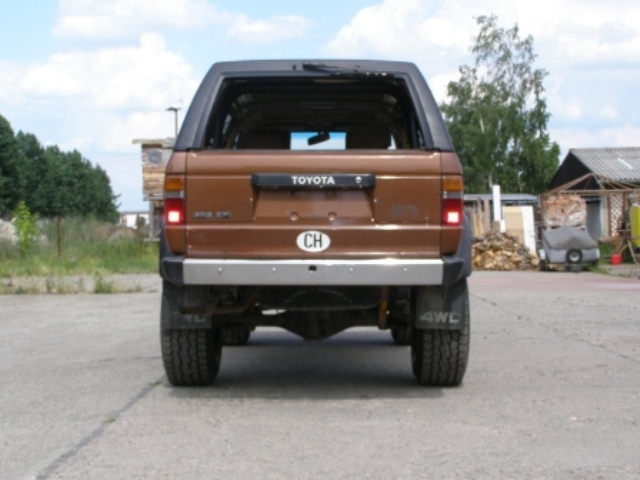 Dieses Fahrzeug wurde aus der Schweiz importiert, wird bei uns leicht umgebaut ( 75 Body-Lift, Stahlfelgen 8,5 x 15 mit 33 x12,5/15 Bereifung und passenden Verbreiterungen ) und wird später auf Norwegen`s Strassen fahren. Der Toyota nach dem Umbau: Technische Daten : Hubraum : 2,4 l Benziner Leistung : 116 PS Bj. : 1988 Reifen : 33 x 12,5 / 15 Felgen : 8,5 x 15 ET -38 Höherlegung durch Federn vorn : Drehstäbe 40 mm hinten : Blattfedern 60 mm Karosserie Höherlegung BodyLift : 75 mm Die Fahrzeugabnahme gelang erst beim zweiten Anlauf, da einige Datenblätter an der Prüfstelle fehlten!