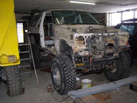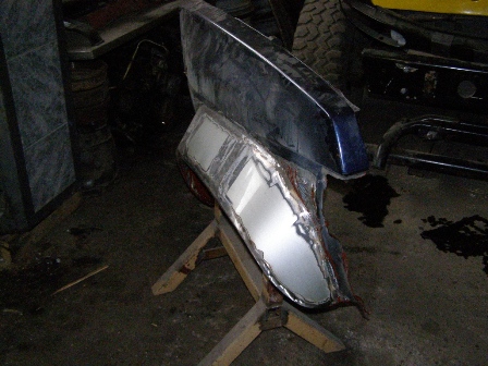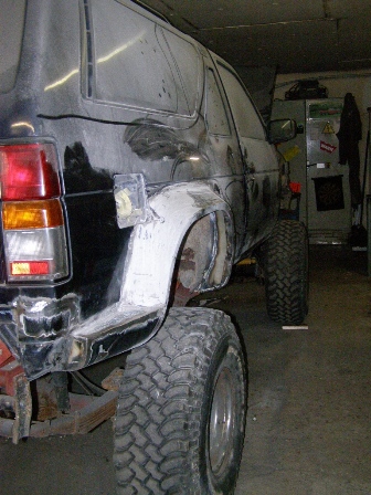 Ich nahm mein Schweißgerät, eine alte Nissan Patrol Motorhaube und baute mir die Verbreiterungen selber. Die Kotflügelverbreiterungen wurden komplett verschweißt und mit Innenblechen gegen Steinschläge verstärkt.
